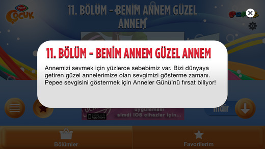 Son derece başarılı bir uygulama olup ücretsiz olarak sunulan TRT PepeeTV uygulaması sayesinde dilediğiniz her yerde dilediğiniz zaman çizgi filmin bölümlerine ulaşabilirsiniz. Tabii ki ulaşmak istediğiniz bölümleri daha önceden indirmeniz ve eğer ücretliyse satın almanız gerekebilir. Bölümleri indirdikten sonra net bağlantınız olmasa bile izleyebiliyorsunuz.